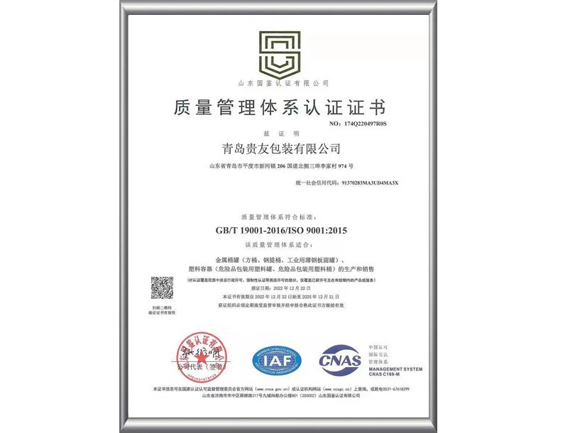青島貴友包裝有限公司位于青島平度市,公司成立于2020年11月16日,其前身為青島貴友制桶有限公司,擁有十幾年的包裝容器生產制造經驗,是青島專業的鐵桶和塑料桶生產制造廠家。因擴大生產規模,公司從青島城陽區遷址到青島平度新河鎮,重新建設升級現代化廠房一萬二千平,投入大量先進的自動化設備,自動化生產覆蓋率行業領先。公司目前具備年產300萬罐各類型包裝容器的能力,同時有托盤、拉伸膜、編織袋、包裝袋、包裝紙箱等新上及預備項目,力求打造包裝類產品一站式配套服務...